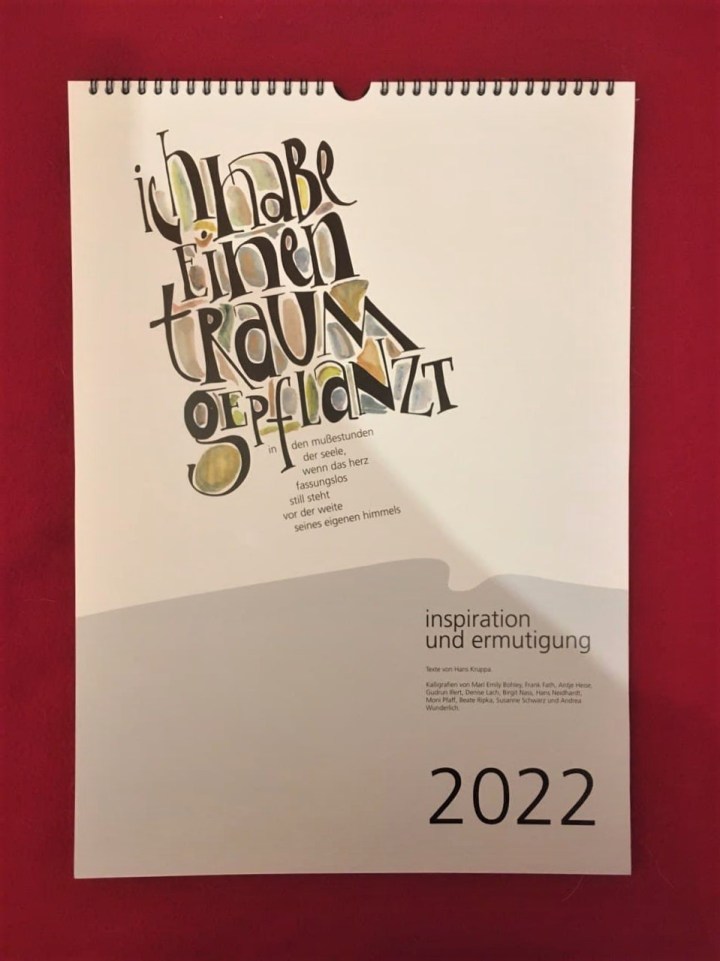 Mein geschätzter Kollege Hans Neidhardt hat den Kalender überarbeitet. Die Texte des 2022er Kalenders stammen allesamt von Hans Kruppa. Es sind Gedichte und Aphorismen, die mir beim Durchlesen große Freude gemacht haben.
