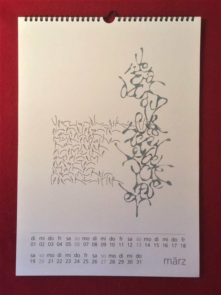 Die Kalligrafie des Märzkalenderblattes stammt von Gudrun Illert, der Aphorismus wie immer von Hans Kruppa