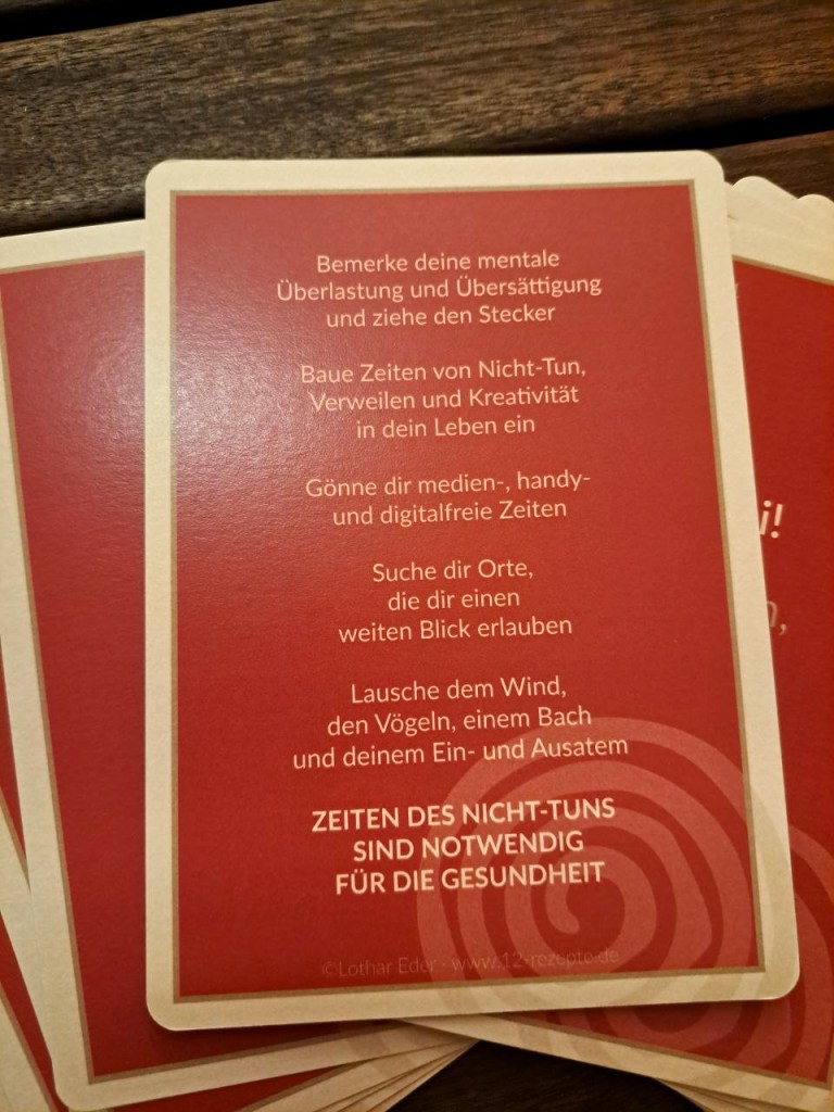 Die Rezeptkarte gehört zu den „12 Rezepten für deine Seele“ – der „analogen App“ für mehr innere Balance und Wohlbefinden von Lothar Eder.