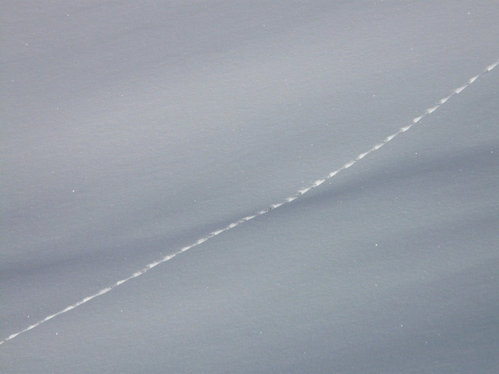 Ich stoße auf Spuren von Rehhufen im Schnee.